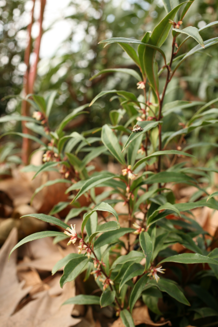 Likes damp conditions and light shade but grows well at the College in dry raised beds. Wonderfully fragrant in January and February