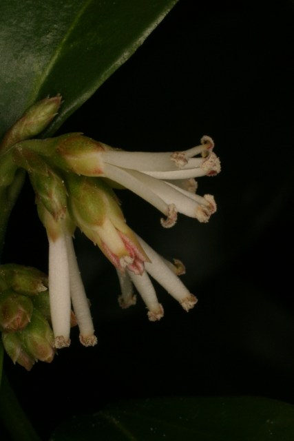 Likes damp conditions and light shade but grows well at the College in dry raised beds. Wonderfully fragrant in January and February.
