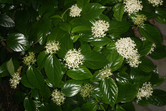 Viburnum japonicum Spreng. Caprifoliaceae Evergreen Shrub. Distribution: Japan and Taiwan. No medicinal uses. The fruit is a 'famine food' eaten when all else fails. As other seeds/fruits of Viburnum species are listed as poisonous, and none are listed as 'edible', one can assume that the seeds/fruits of V. japonicum are also toxic. It does not appear vulnerable to pests or molluscs which may be due to irioid glycosides that are present in this genus produced as a defence against herbivores, fungi and bacteria. They have a bitter taste.
