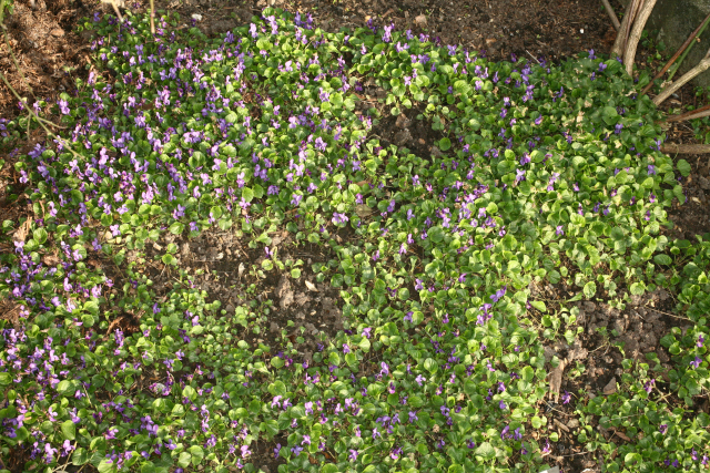Some of our Viola odorata are double flowered. The IPNI have no record of a botanical name for the double flowered form (although a number of double flowered cultivars have been named such as 'Bethan Davies'. The name Viola odorata flore-pleno is not a valid botanical name (RHS).