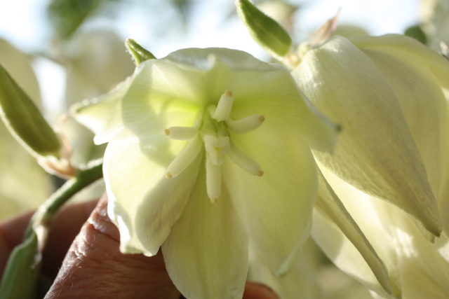 The following notes do not apply to Y. flaccida specifically but to the genus as a whole: Although considered poisonous, the Navajo would apply a poultice of the plant to the head to aid sore throats.