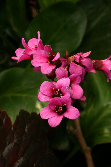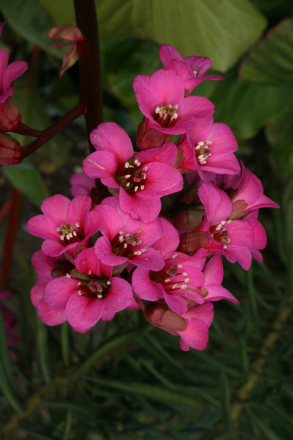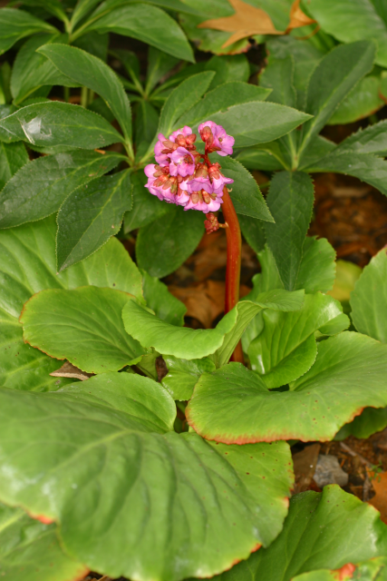 Bergenia Moench. Saxifraginaceae. Elephant's ears. Named for Karl August von Bergen (1704-1759), physician and botanist, professor at Viadrina University, Frankfurt. 'Bressingham Ruby' is a cultivar raised at Blooms of Bressingham by Alan and Adrian Bloom. Rhizomatous perennial. Distribution: Afghanistan to China.