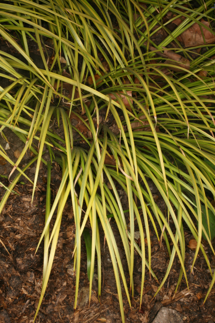 Acorus gramineus Aiton, Acoraceae. Japanese sweet flag; grassy-leaved sweet flag. Rhizomatous perennial. Distribution: E. Himalaya to Japan and Philippines. The cultivar 'Oborozuki' has yellow leaves with green stripes. The rhizomes are aromatic. The European Acorus calumus is used to make a volatile oil which contains β-asarone as the major component. This is carcinogenic in animal studies and nephrotoxic and epileptogenic. Acorus gramineus is used medicinally throughout Asia and In the Philippines it has the same multiplicity of uses as A. calamus, including treatment of arthritis, lumbago, muscle pains, indigestion; toothache, as a tonic, to increase the appetite, haemorrhage, treat intestinal ulceration, used as a sedative, for tinnitus, deafness, poor memory, unconsciousness during a fever, for treating insanity, as an insecticide abscesses and scabies and to protect young children from getting flatus when someone compliments them on their appearance – a condition known as ‘usog’.