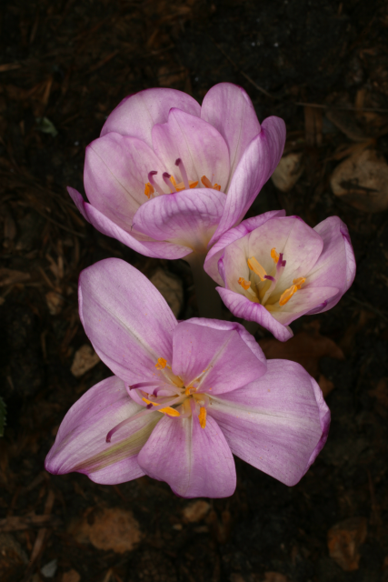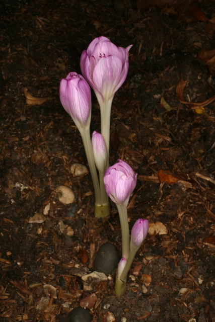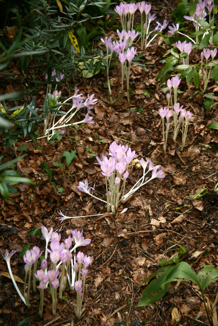 Colchicum autumnale L., Colchicaceae. Autumn crocus, meadow saffron, naked ladies. Distribution: Europe. Extremely toxic, containing colchicine which is effective in small doses in treating gout. It inhibits mitosis so is of interest in cancer treatment. It is used to treat Familial Mediterranean fever. It induces polyploidy in plant protocorms for the production of tetraploid forms which have bigger flowers and seeds.