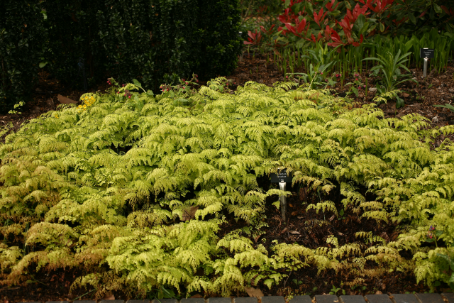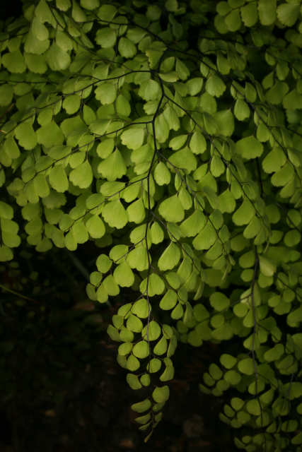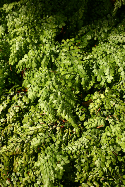Adiantum venustum D.Don Adiantaceae (although placed by some in Pteridaceae). Himalayan maidenhair fern. Small evergreen hardy fern. Distribution: Afghanistan-India. It gains its vernacular name from the wiry black stems that resemble hairs. Adiantum comes from the Greek for 'dry' as the leaflets remain permanently dry. A related species has been used medicinally. The Cherokee used A. pedatum to make their hair shiny. Henry Lyte (1576), writing on A. capillus-veneris, notes that it restores hair, is an antidote to the bites of mad dogs and venemous beasts; helpeth shortness of breath and excess phlegm; treats kidney stones, periods, helps deliver the placenta, and more. Linnaeus (1782) recommended it for intestinal obstruction.