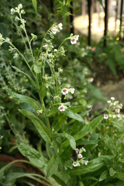 Cynoglossum officinale L. Boraginaceae. Houndstongue. Distribution: Europe. Culpeper (1650) writes: “... being roasted and laid to the fundament, helps the haemorrhoids. It is also good against burnings and scaldings.” It contains hepatocarcinogenic pyrrolizidine alkaloids and while people are known to eat the young leaves as a vegetable, this is inadvisable. The whole plant is hairy and may cause contact dermatitis. The use of herbal remedies, which contain these alkaloids, by the Bantu of southern Africa correlates with their high incidence of tumours of the liver and pancreas.