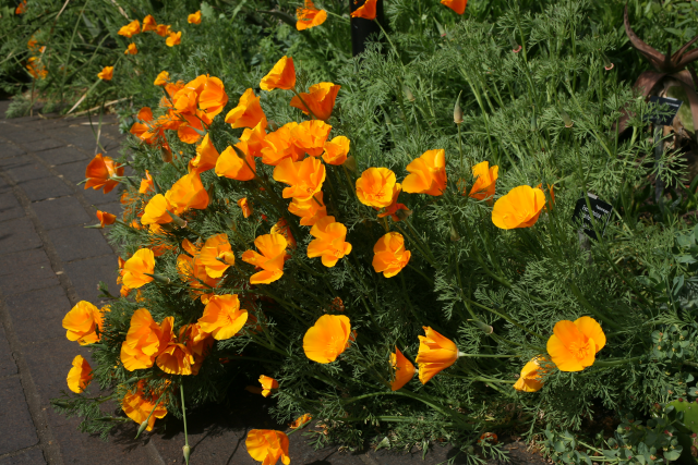 Eschscholzia californica Cham. Papaveraceae. Californian poppy. Named for German botanist and physician, Johan Friedrich von Eschscholtz (1793-1831). Distribution: North America. Official state flower of California. Contains berberine, considered a potential source for many new medicines, and numerous alkaloids some of which may have mild anxiolytic activity.