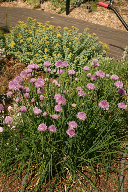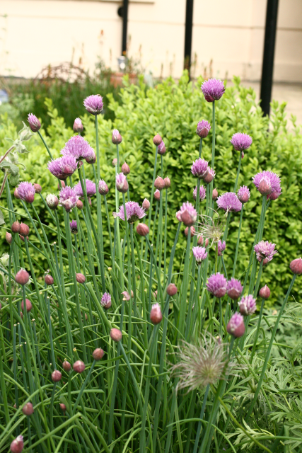 Allium schoenoprasum L. Alliaceae. Chives. Bulbour perennial herb. 'schoenoprasm' means 'rush leek' in Greek, referring to thenarrow leaves. Distribution: Asia, Europe and North America. Leaves used as a garnish on cooked food and in salads. However like the Boraginaceae it contains the pyrollozidine alkaloid cynoglossine which causes liver damage.