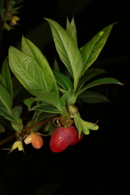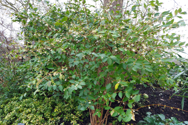 A bushy, spreading, deciduous or semi-evergreen shrub with paired, oval leaves, to 7cm (3in) long, dull, dark green above, blue-green beneath, with bristly margins when young. Tubular, 2-lipped, very fragrant, creamy white flowers, 1cm long, are produced in pairs from the leaf axils in winter and early spring. Berries are dull red. It grows to 2m (6ft) high by 3m (10ft) wide. Full hardy. Grow in any well-drained soil in full sun or partial shade. Sow seed of hardy species in containers in a cold frame as soon as ripe. Alternatively, semi-ripe cuttings can be taken in summer. Aphids may be a problem.