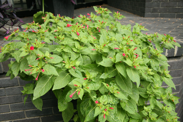 Four o’clock flower (flowers open in late afternoon, fragrant all night, pollinated by hawk moths). Not the source of Jalap, the purgative from the roots of Ipomoea purga. Can be used to extract cadmium from polluted soils. Used a food colouring, and as a diuretic, purgative, healing wounds and even aphrodisiac.