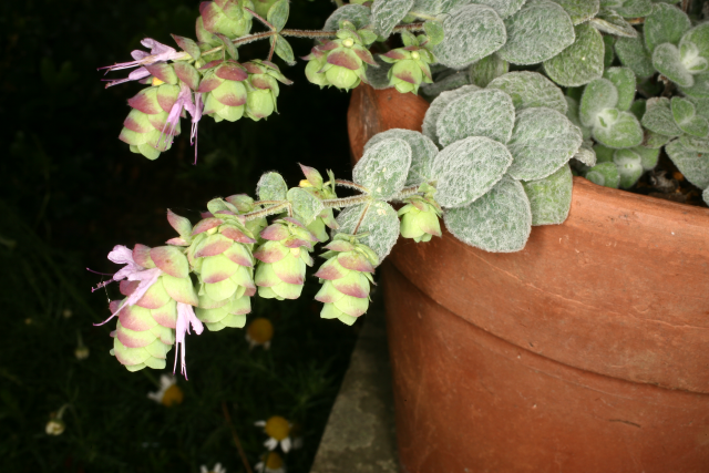 Origanum dictamnus L. Lamiaceae Dittany of Crete, Hop marjoram. Distribution: Crete. Culpeper (1650) writes: ‘... hastens travail [labour] in women, provokes the Terms [menstruation] . See the Leaves.’ Under 'Leaves' he writes: ‘Dictamny, or Dittany of Creet, ... brings away dead children, hastens womens travail, brings away the afterbirth, the very smell of it drives away venemous beasts, so deadly an enemy is it to poison, it’s an admirable remedy against wounds and Gunshot, wounds made with poisoned weapons, draws out splinters, broken bones etc. They say the goats and deers in Creet, being wounded with arrows, eat this herb, which makes the arrows fall out of themselves.' Dioscorides’ Materia Medica (c. 100 AD, trans. Beck, 2005), Pliny the Elder’s Natural History and Theophrastus’s Enquiry into Plants all have this information, as does Vergil’s Aeneid where he recounts how Venus produced it when her son, Aeneas, had received a deadly wound from an arrow, which fell out on its own when the wound was washed with it (Jashemski, 1999). Dioscorides attributes the same property to ‘Tragium’ or ‘Tragion’ which is probably Hypericum hircinum (a St. John’s Wort): ‘Tragium grows in Crete only ... the leaves and the seed and the tear, being laid on with wine doe draw out arrow heads and splinteres and all things fastened within ... They say also that ye wild goats having been shot, and then feeding upon this herb doe cast out ye arrows.’ . It has hairy leaves, in common with many 'vulnaries', and its alleged ability to heal probably has its origin in the ability of platelets to coagulate more easily on the hairs (in the same way that cotton wool is applied to a shaving cut to hasten clotting).