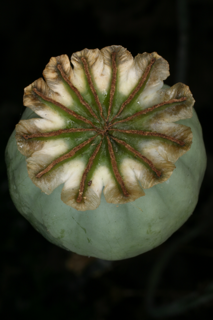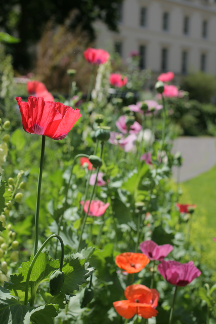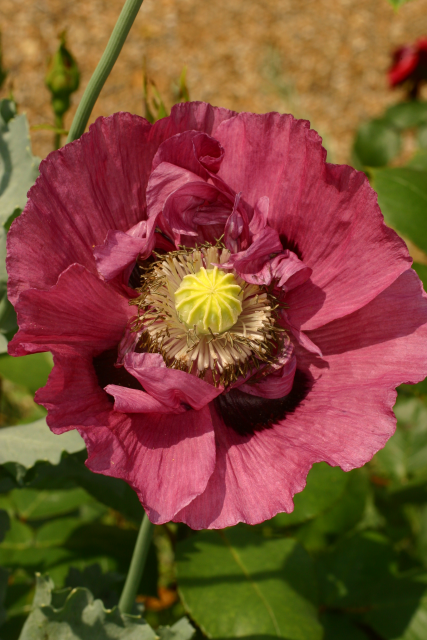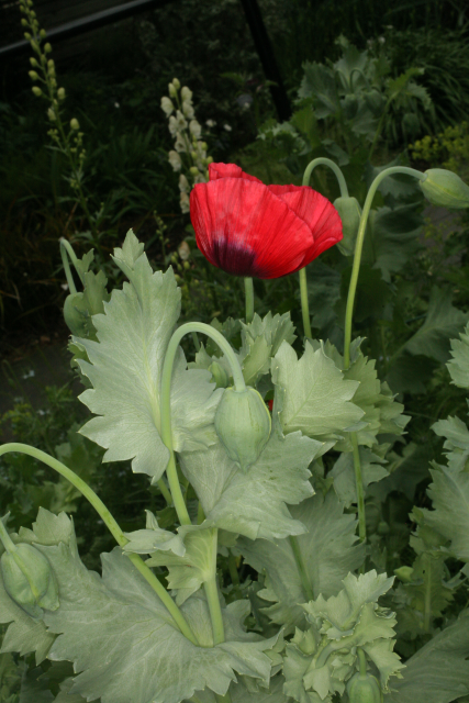 Notes by Henry Oakeley from Lindley's 'Flora Medica' (1838): The Opium Poppy comes into flower in July in the Garden. It is still one of the best cash crops in the world for medicinal, and other, applications, having apparently been in use since 4,000 BC (found illustrated on Sumerian pottery). Lindley writes ‘from the wounded, half-ripe [seed] capsules flows a juice that concretes into opium, that well-known powerful narcotic drug’. The dried seeds are sweet to the taste and commonly used to ornament bread and bagels. Lindley again: ‘The seeds are not narcotic but yield a bland oil, similar to that obtained from olives’. Various television shows recently have alleged that one can test positive for opiates after eating two to four bagels, so perhaps athletes should take care when visiting the bakery.